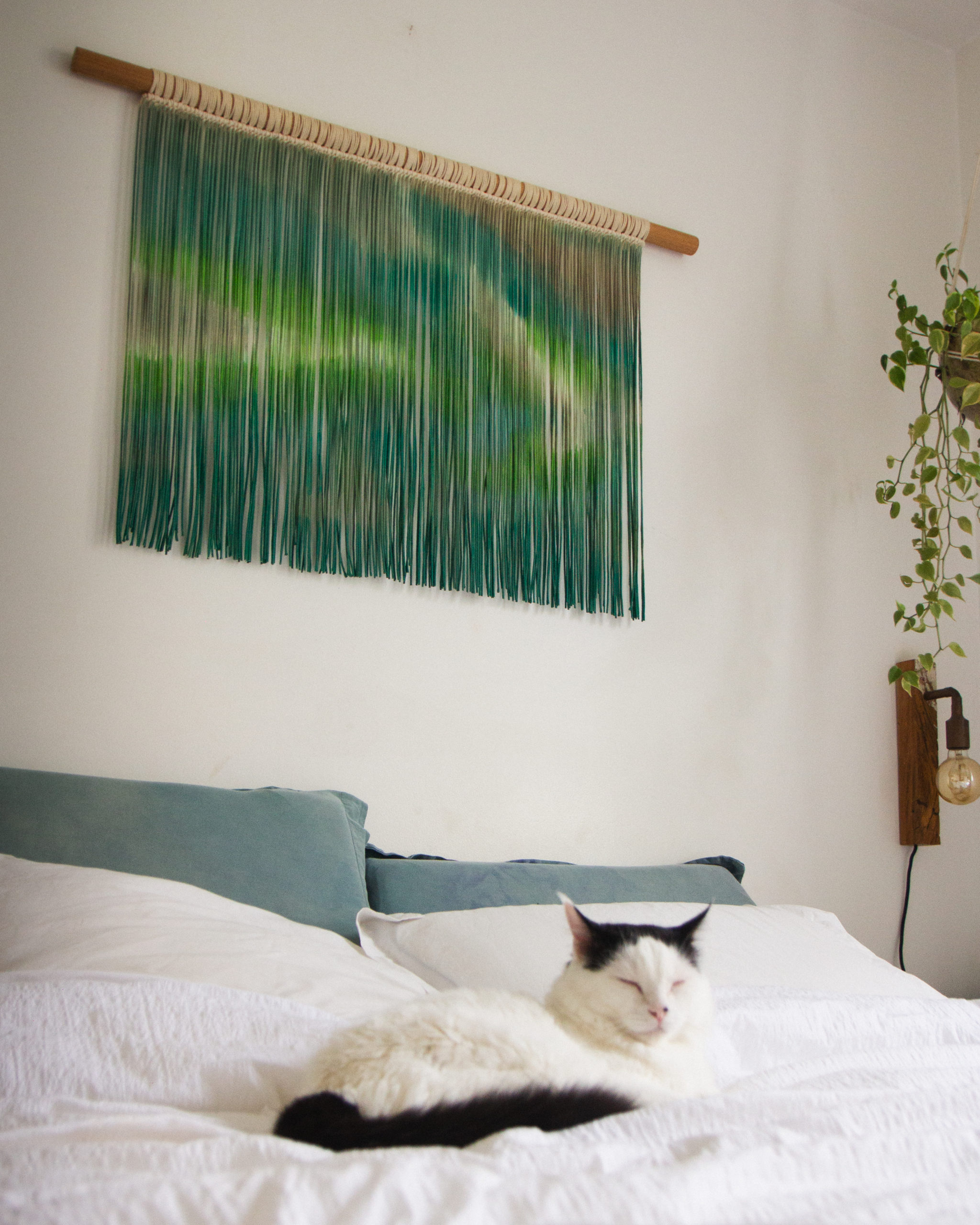 Painel pintado à mão inspirado nos tons verdes da aurora boreal